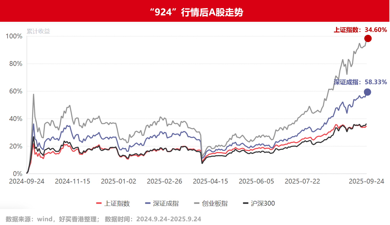 谁也没有想到,这一波始于2024年9月24日的行情表现,如此令人振奋。924新政发布后,A股市场迎来历史性转折,市场情绪全面激活,开启“慢牛”行情。