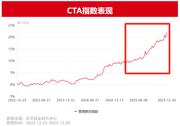 看好买基金研究中心编制的管理期货指数,2025年CTA基金加速上涨的态势尤为明显。