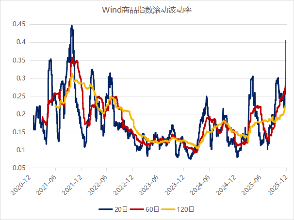 商品指数波动率变化在2025年继续放大,全年来看,主要在时间点出现明显升波: