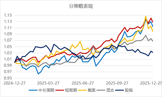 分策略看,大部分商品CTA策略在2025年都获得了一定收益表现,股指策略表现相对较弱。