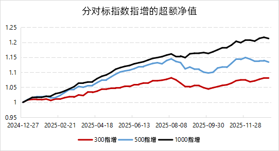 2025年对量化策略而言无疑是成果丰硕的一年。在beta(市场整体收益)与alpha(超额收益)的双重推动下,各类量化多头产品普遍实现了可观的绝对收益。在小市值风格的助力下,选股自由度更高的量化多头策略相比500、1000指增展现出了更为强势的进攻性。