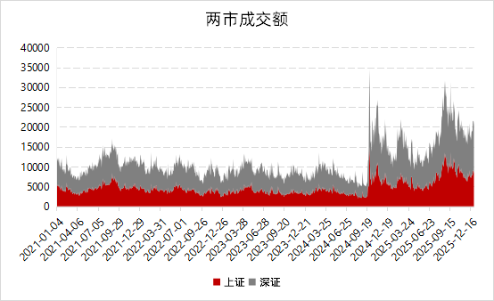 2025年,A股市场全年交投活跃,成交量显著超过往年水平。其中8月的表现尤为突出,单日成交额一度突破3万亿元,创下历史新高。随后在AI主题引领的三季度行情中,市场成交量依然保持在1.5万亿至2.5万亿的高位区间震荡。
