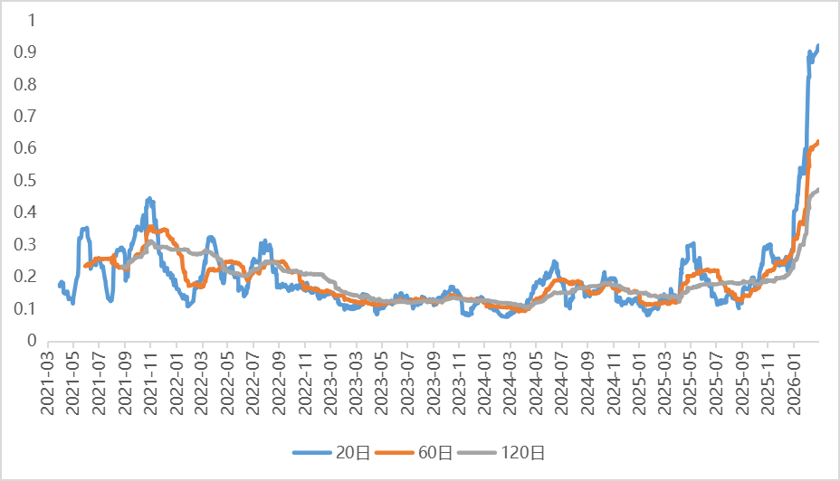 商品指数波动率在贵金属的带动下维持较高水平。