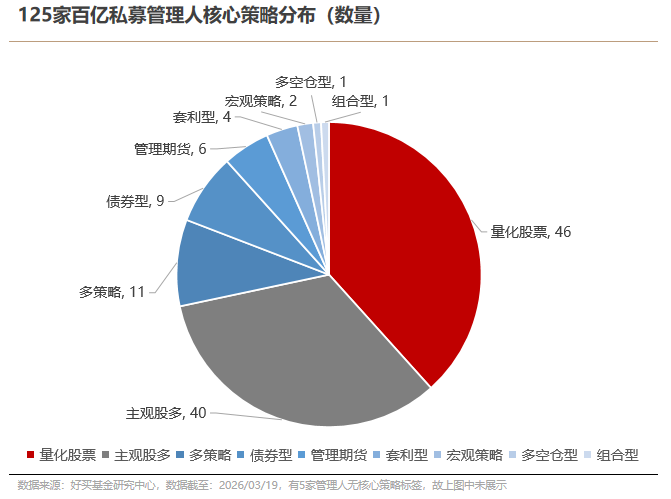 截至2025年底,二级证券私募行业规模超7万亿元,管理人数量约8000家,规模超100亿元的证券私募管理人有125家,该统计数据略有偏小,实际数量要更多。