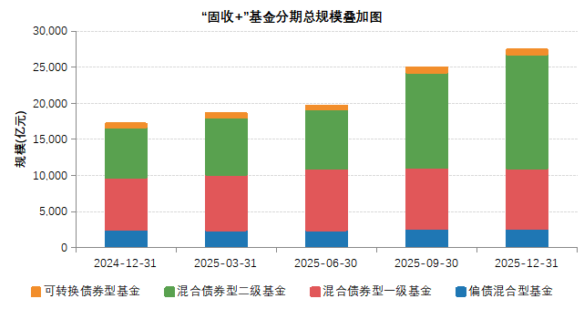 近期,“固收+”基金持续成为市场焦点,规模与业绩双线亮眼。好买基金研究中心数据显示,截至2025年末,“固收+”四大品类总规模逼近3万亿元,策略分化与业绩韧性并存。
